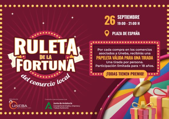 BASES REGULADORAS CAMPAÑA COMERCIAL “LA RULETA DE FORTUNA DEL COMERCIO LOCAL” DE REGALOS DIRECTOS PARA EL FOMENTO DEL CONSUMO LOCAL EN LOS COMERCIOS DE BAENA. La finalidad del sorteo de “la ruleta de la fortuna” es promover el consumo en los pequeños establecimientos de Baena, socios de UNEBA, inscritos en esta actividad, Este incremento del […]